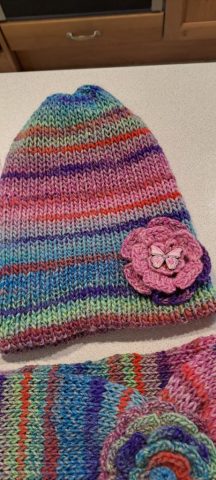 Anita has developed a range of one off knitted and crochet items. In this range she has created bags, hats, neck pieces and gloves.